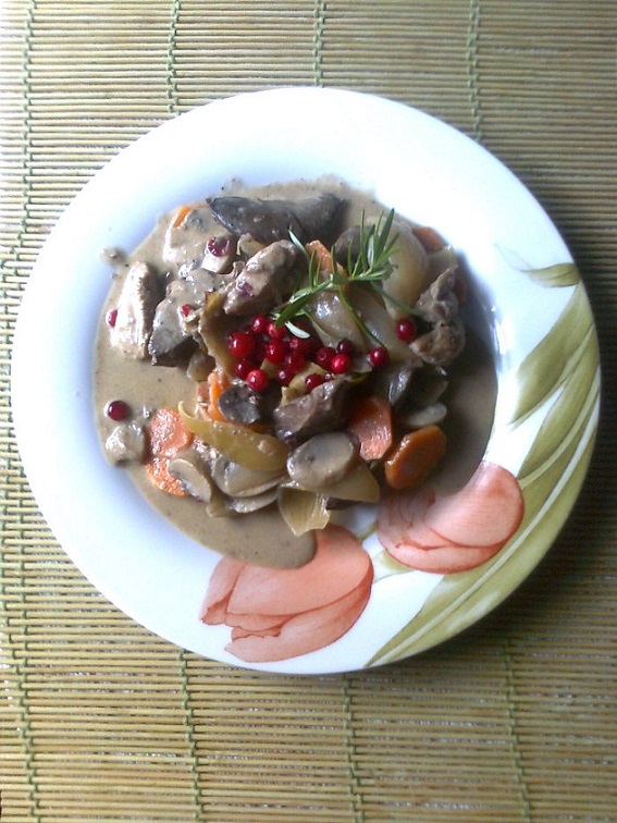 Przepis norweski na wieloryba, nadaje się do różnych mięs, a żeby pozostawić pewne elementy smakowe, nieco podobne do wieloryba, wymyśliłam sobie, że spróbuję wykorzystać przepis do wątróbki – wyszło pycha.