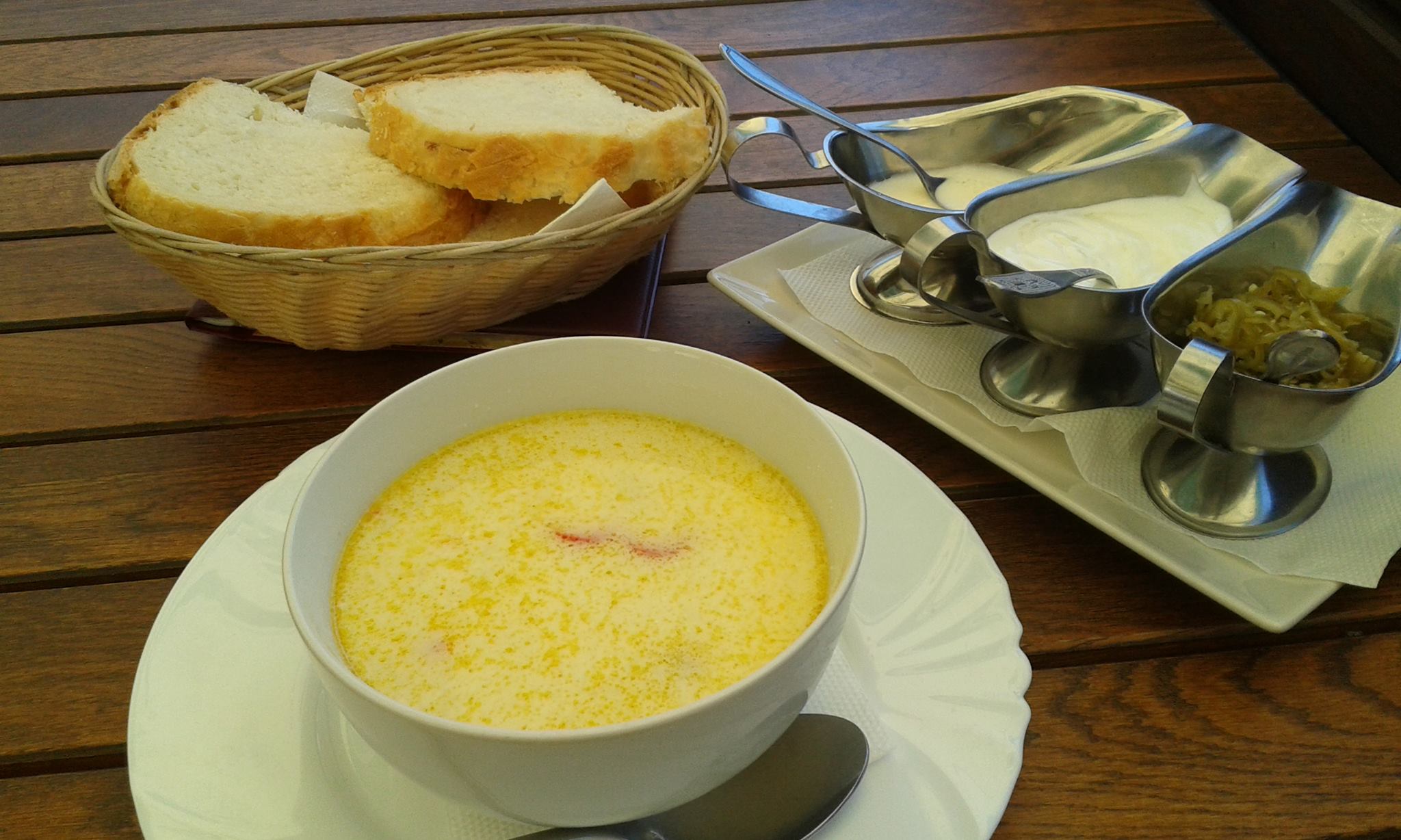 Zupa jest pyszna, do swojej dodałam papryczki i śmietanę z czosnkiem, w czystej śmietanie maczałam chleb.