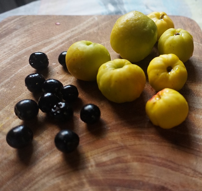Ja kompoty lubię zwłaszcza z mirabelek, które zbieram na rowerowej przejażdżce, a ostatnio odkryłam genialny kompot nieomal z garści owoców! A są nimi pigwy i aronia.