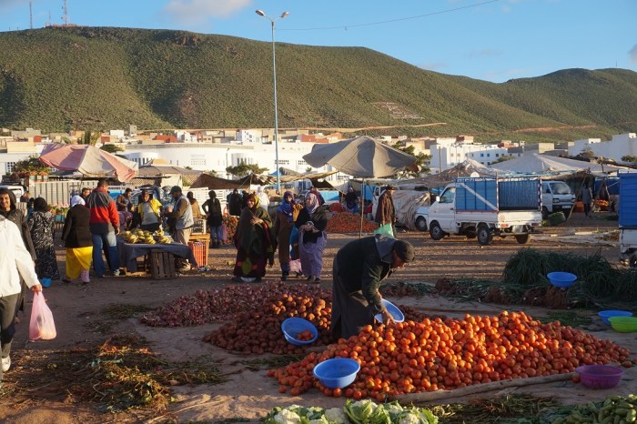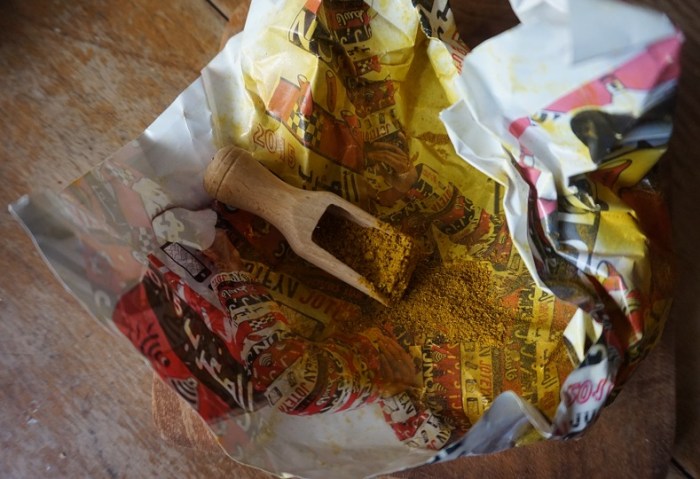 Pan drewnianym czerpakiem odsypał mi z worka ziół do papierowego zawiniątka utworzonego z kartki wyrwanej z marokańskiego kolorowego magazynu, zważył papier potem całość, następnie skrzętnie zawinął i zapodał mi pachnące zawiniątko z uśmiechem. Uwielbiam kupować zioła i smakołyki.