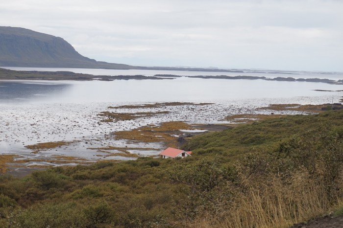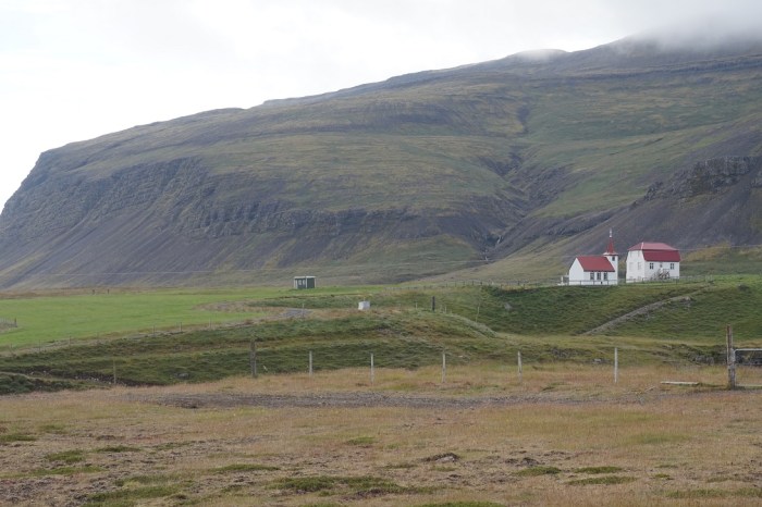 Wszystko, co miłe i wygodne jednak szybko się kończy, więc następnego dnia wyruszamy dalej, by po drodze zwiedzić skansen – wiele powiedziane, w skansenie jest jeden i klepisko wśród krzaków po innym domu. W domu zamieszkiwał banita Leifur Eiriksson, wyrzucony poza społeczność za przemoc, a po następnych napaściach wyrzucony zupełnie z wyspy. Leifur odpłynął, więc i dopłynął do Grenlandii – założył tam pierwsze normańskie osady. Podobno dotarł, aż do Kanady do pełnej łososi rzeki Świętego Wawrzyńca. Oznacza to ni mniej ni więcej, że to nie Kolumb odkrył Amerykę, a banita Leifur Eirksson.