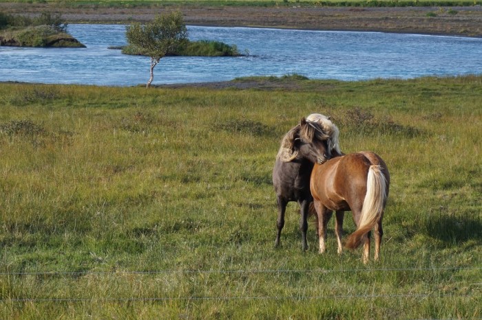 Mijamy barany, owce i piękne koniki islandzkie o krępych nogach i długich grzywach.