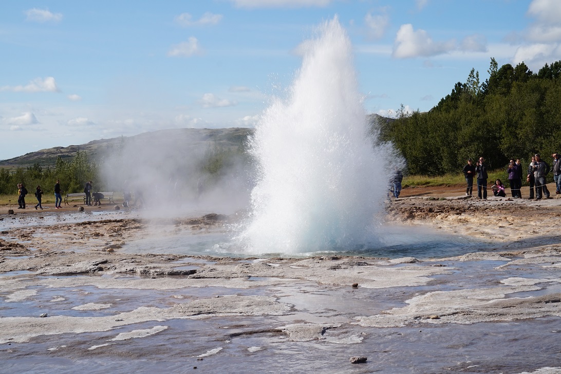 Niby jest tu mnóstwo turystów, ale i tak robi wrażenie. Wszyscy czekają w napięciu na wielki wybuch, tylko, co któryś jest naprawdę wysoki, więc nie dajcie się zbyć. Gdy się pojawi wszyscy zgromadzeni są bardzo podekscytowani i biją brawo. To chyba pierwsze przyrodnicze miejsce, w który słyszałam oklaski. Ale Islandia to Islandia, nawet turyści się zmieniają pod jej wpływem.